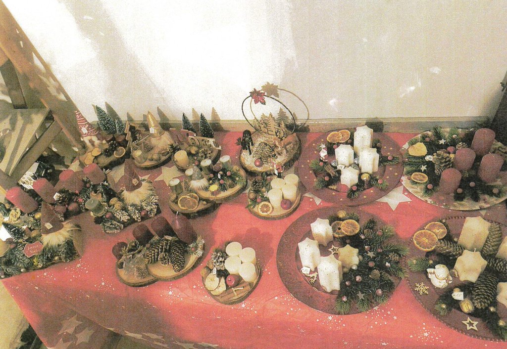 Mme Carole Weber propose ses décorations de Noël à la vente.