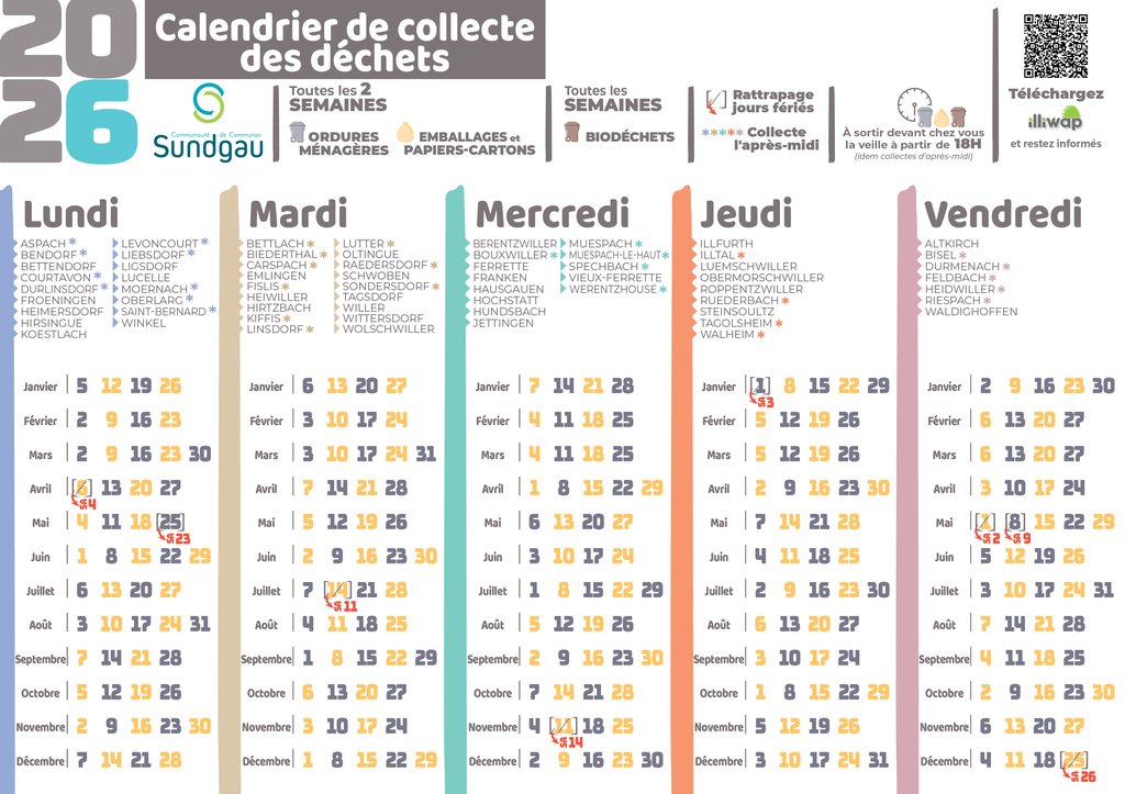 Vous trouverez ci-joint le calendrier de collecte des déchets 2026