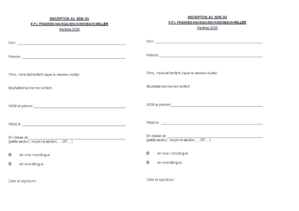 Vous habitez Franken, Hausgauen ou Willer : l'inscription est à réaliser à la Mairie de Franken