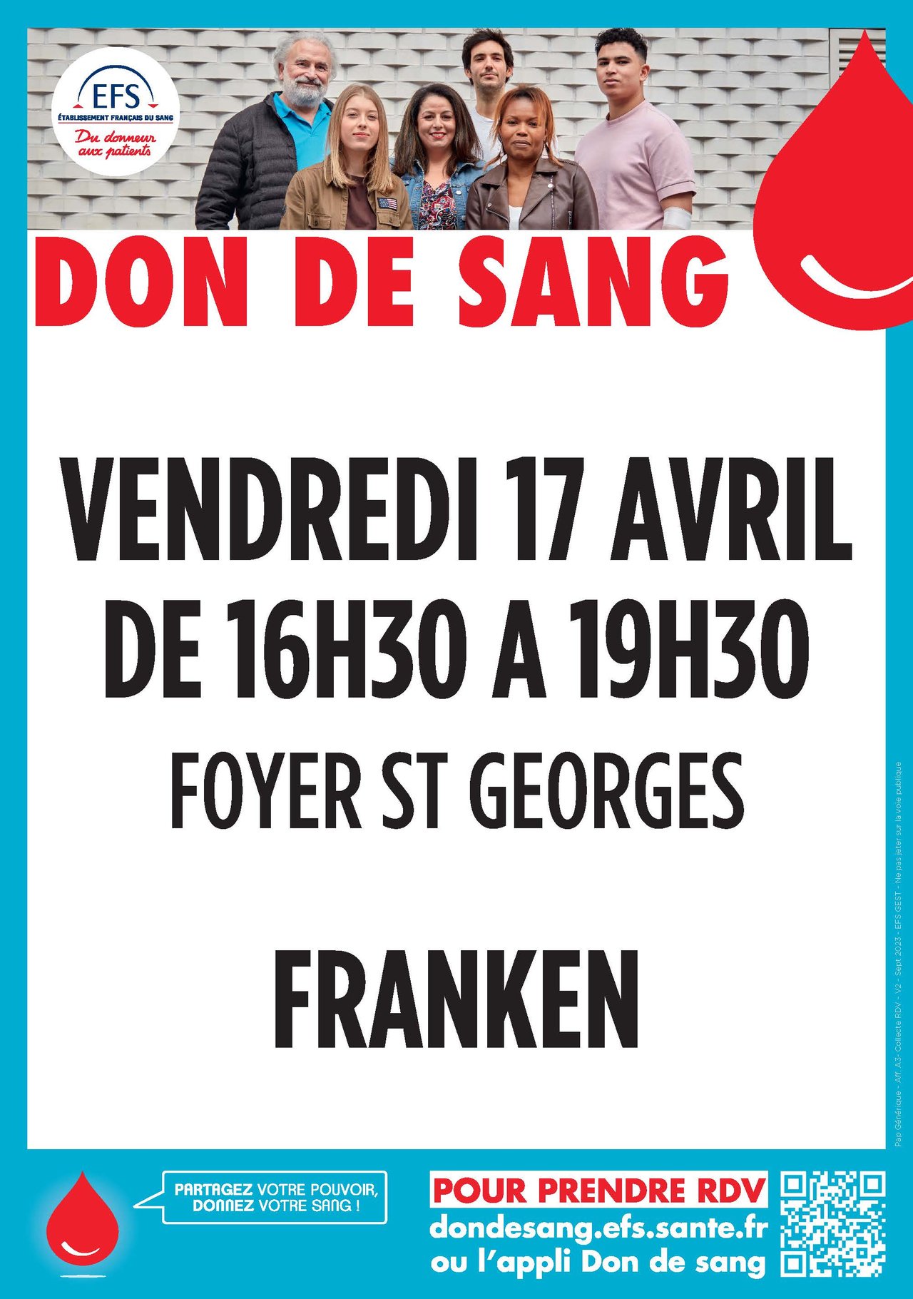Don du sang le 17 avril à la salle Saint Georges de Franken. 🩸